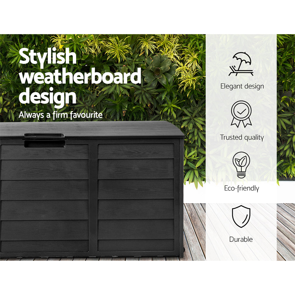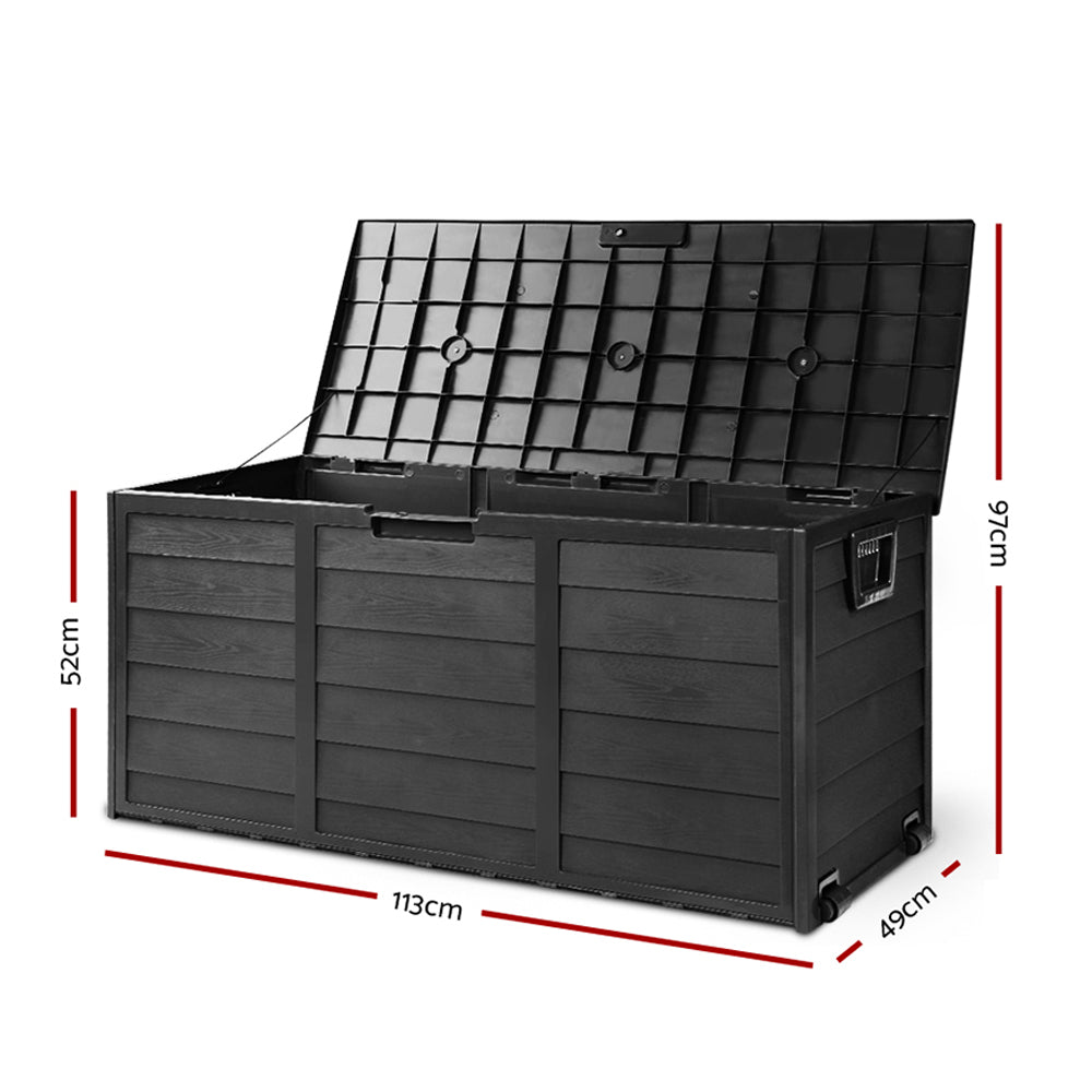Things beginning to look a tad messy around the backyard? Need to tidy up the garage or shed? Or perhaps you need some extra storage space for all your knick-knacks and other household items. Well, we have just the thing for you. Our Outdoor Storage Box is just perfect for storage outdoors and indoors. With a large storage capacity 0f 290L, the box is totally practical in every way. Use it to store anything – gardening tools, collectibles, books, clothes or even bedding. Made of durable and weatherproof PP material, the box does not rust and can stand up to robust use with ease. The integrated wheels and handles make it easy to carry around. Not least, the lid is lockable to ensure secured storage.