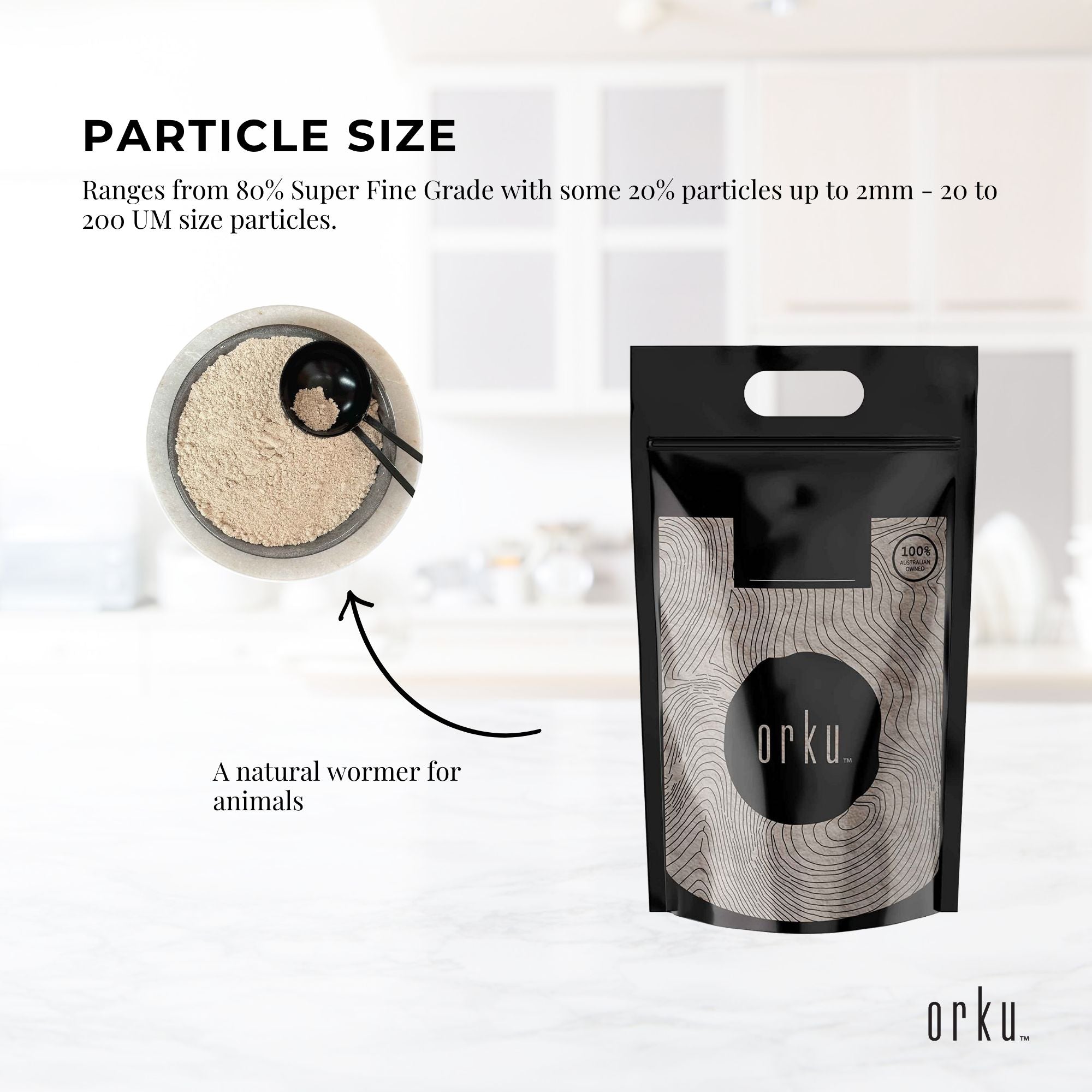 - Particle size: Ranges from 80% Super Fine Grade with some 20% particles up to 2mm - 20 to 200 UM size particles.