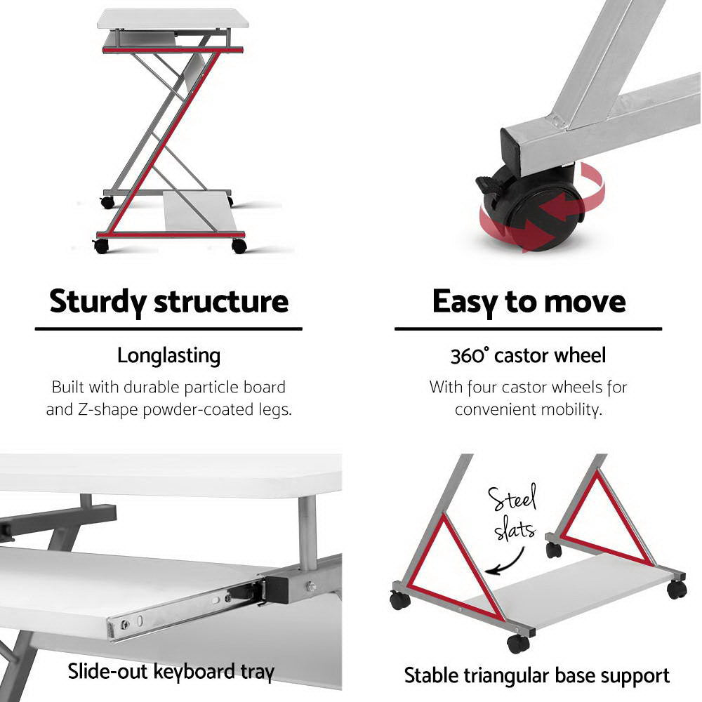 With its spacious 15mm thick table top, the Computer Desk allows you to set your computer or LCD monitor down with ease and still leave room for other work paraphernalia. Slide out the tray beneath and you have additional space for a keyboard to use and put away when done. Closer to the ground, a handy bottom shelf lets you place your CPU and printer conveniently so that the entire ensemble is one single unit. Better still, the swivelling castor wheels make it easy to bring the entire workstation to another location.