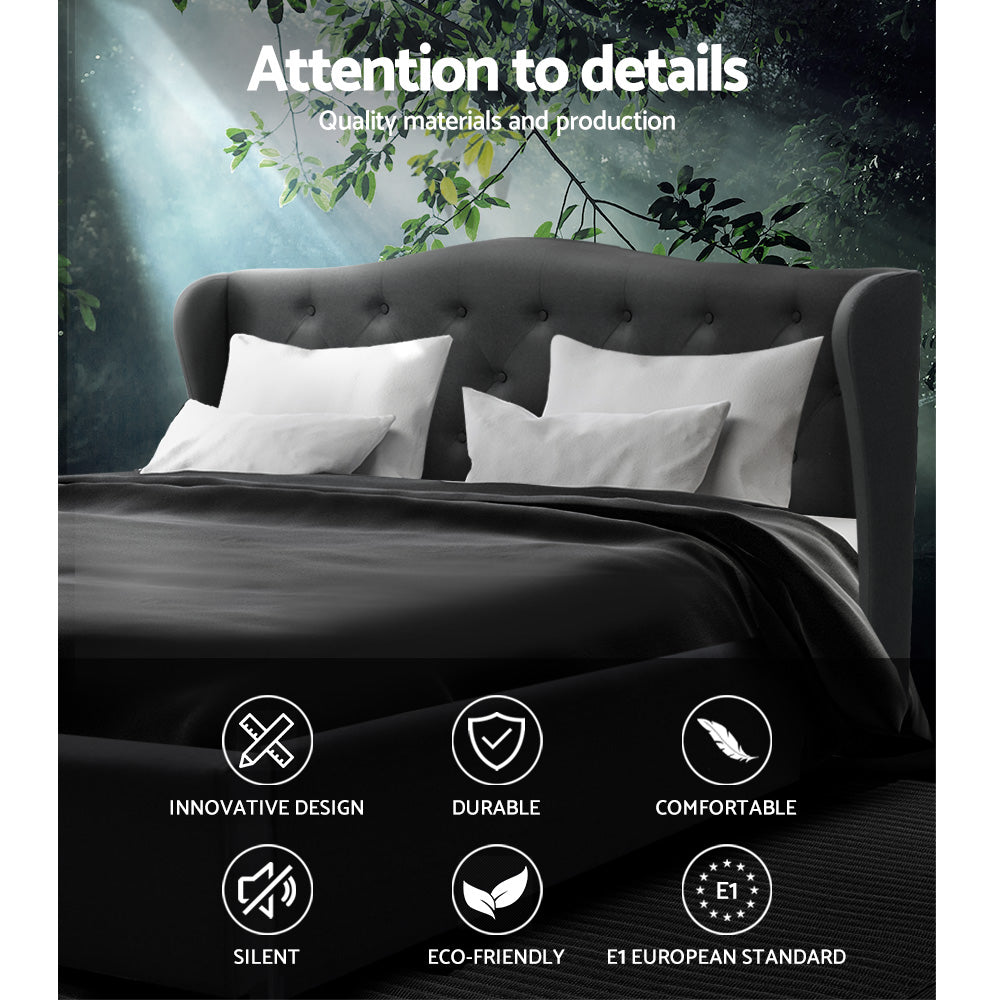 The iconic European wing headboard and tufted design exudes prestige. Padded with high density foam and upholstered in breathable non-woven linen fabric, the Pier Bed Frame is comfortable to sit back on and soft to the touch.