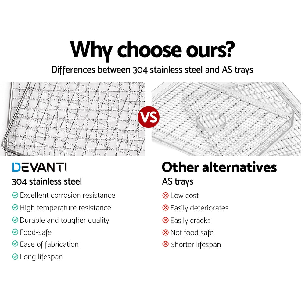 If you love healthy snacks or need to follow a diet plan, our Food Dehydrator is a must-have. Dehydrated foods have a longer shelf life and retain the same amount of vitamins and minerals as do their fresh counterparts. And our food dehydrator will set you up to enjoy all these delectable goodness by creating your very own great tasting health foods. With its nine food-grade stainless steel food trays, our food dehydrator features a complete drying system with all the necessary controls to effectively dry vegetables, fruits, herbs, meat and more. You can easily adjust the temperature and timer to suit the various drying heat and period to suit your dehydration items with easy settings on the LCD touchpad control panel. Plus, the flame retardant door is transparent for easy monitoring. And when it is done, cleaning the removable trays is as simple as letting the dishwasher do all the work. Not least, the food dehydrator has overheating protection to ensure safe use and comes with a SAA-certified plug.