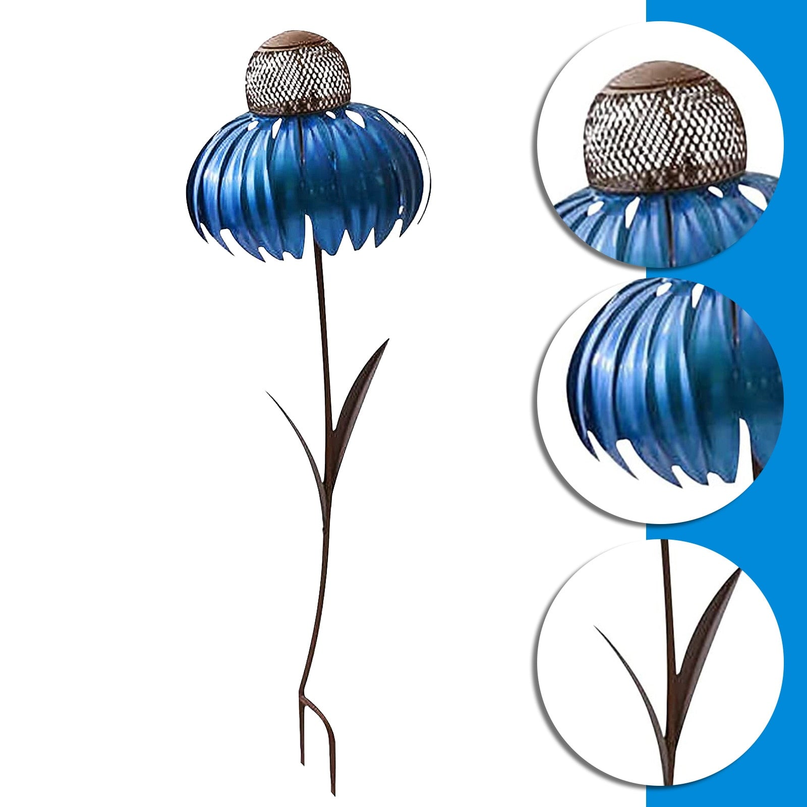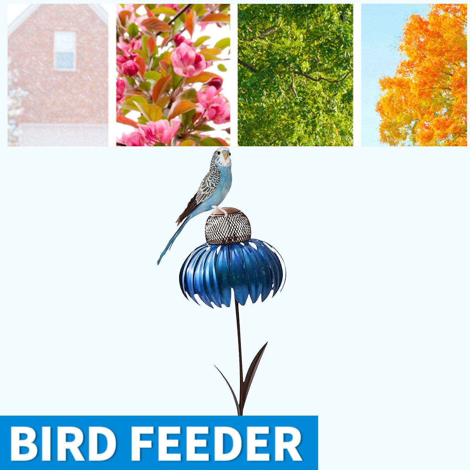 Blue Coneflower Bird Feeder, Flower Shaped, Standing Metal Art Birdfeeder with Stand, Decoration for Outside Garden Yard Outdoor Lawn.