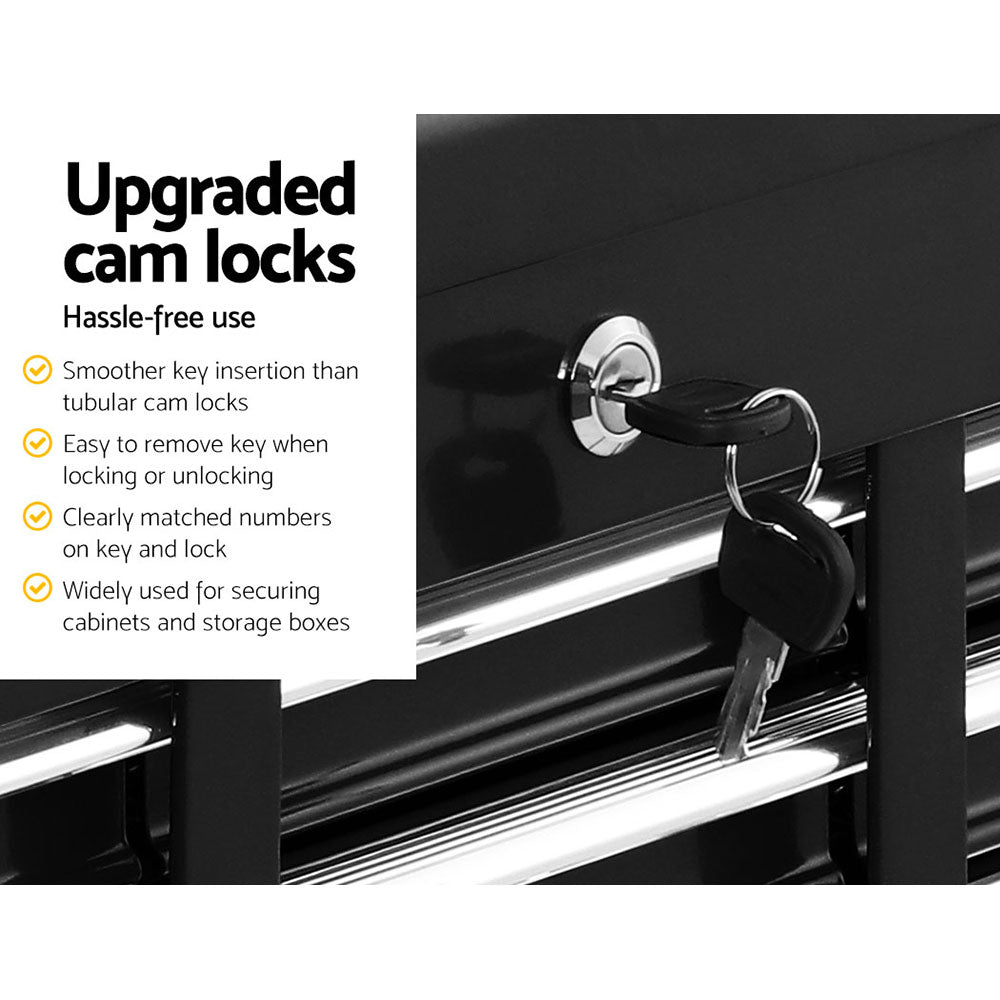 Made from thick high-tensile powder-coated steel, our Giantz Tool Chest is built to keep your precious tools in their proper place with drawers that are specifically designed to cater to various tool sizes with its spacious and multi-sized ten drawers. From top to bottom, each drawer slides in and out effortlessly on quality ball bearings incorporated into the metal drawer runners. Each drawer is also lined to protect your tools and keep them from moving about. Not least, the tool chest is installed with upgraded cam locks for added security.