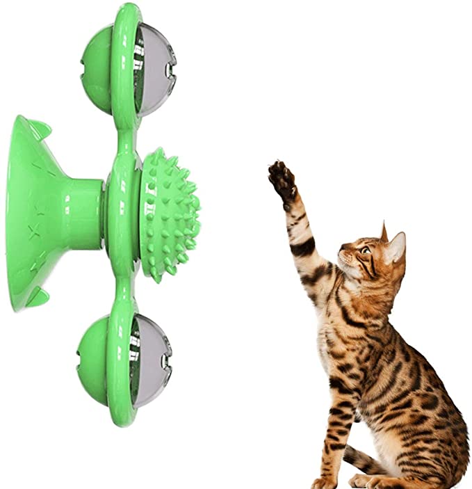 - Uniquely designed - All the designs fit the cat's design and are comfortable for self entertainment. Convenience - Cat turns windmill is easy to attach to any surface with adhesive.And it is rotatable for your cat to play with it, have fun and be healthy.