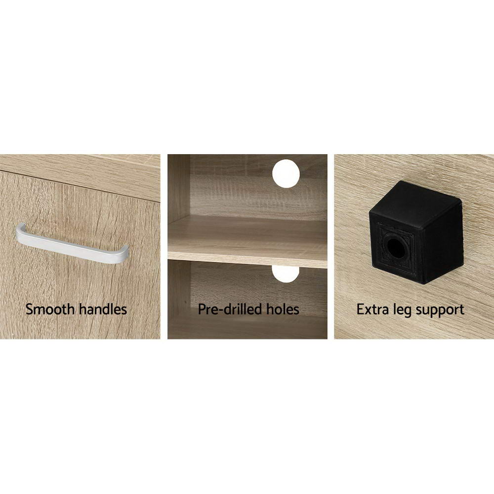 Your treasured home entertainment system deserves the best cabinet for it. And that is why our Maxi Entertainment Unit is the ideal choice for you. Incorporating a contemporary design and presented with durable and strong 30mm thick honeycomb board and 15mm thick particle board, our entertainment unit displays great craftsmanship with equally fine hardware to ensure trouble-free use every time. The natural woodgrain finish is beautiful and smooth to the touch, making the unit not only good-looking but easy to clean and maintain. And it offers ample storage space with two open shelves and two deep cabinets with magnetic door catches for all your entertainment essentials. Better still, the ensemble features smooth handles for a sleek appearance and pre-drilled holes to keep all your cables tidy. The simple and linear design means that the unit will suit any decoration and be the perfect addition to your modern living room. And best of all, you can also match with other products from the Maxi series for the complete simple-natural look.